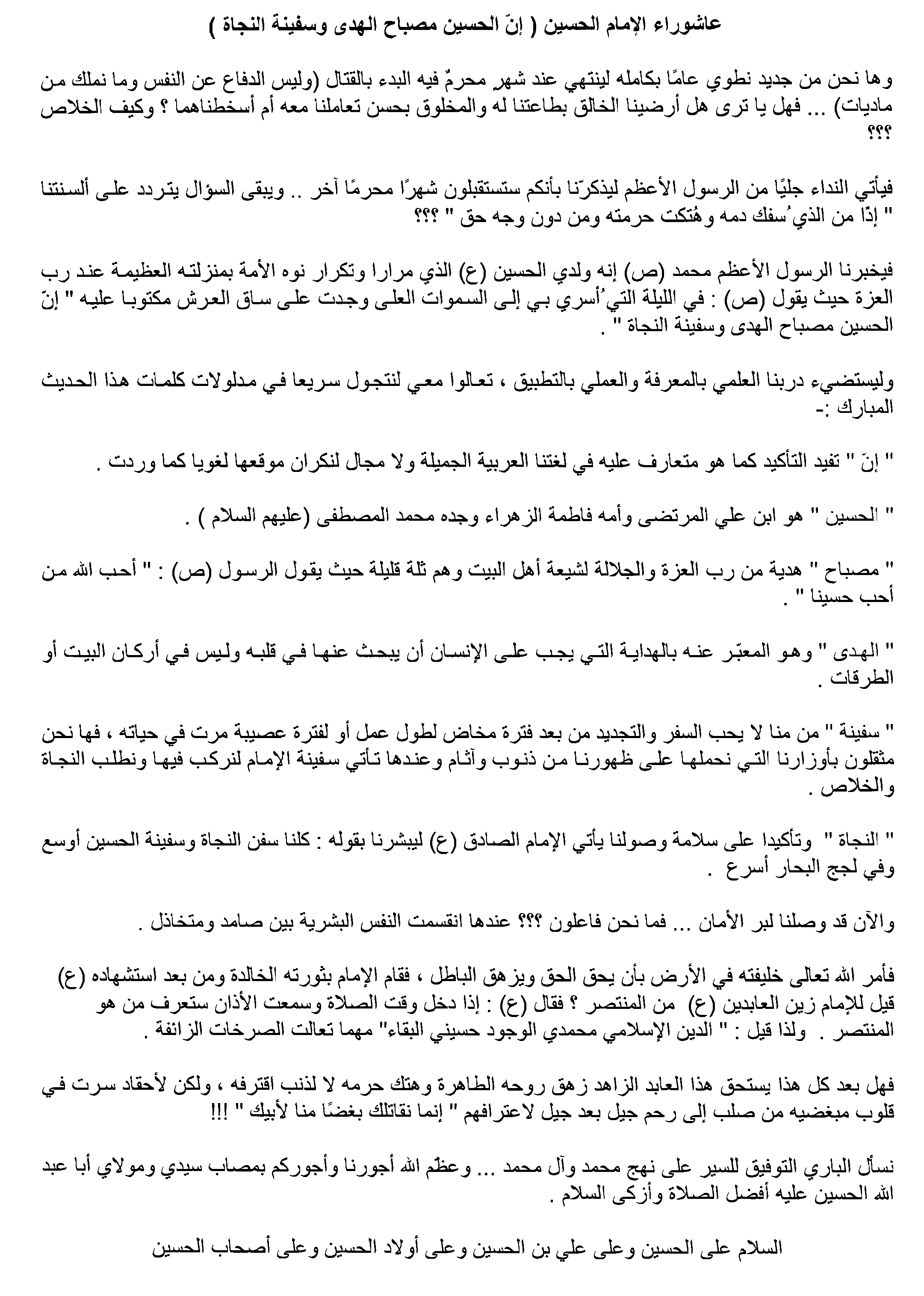 رد: إن الحسين مصباح الهدى وسفينة النجاة